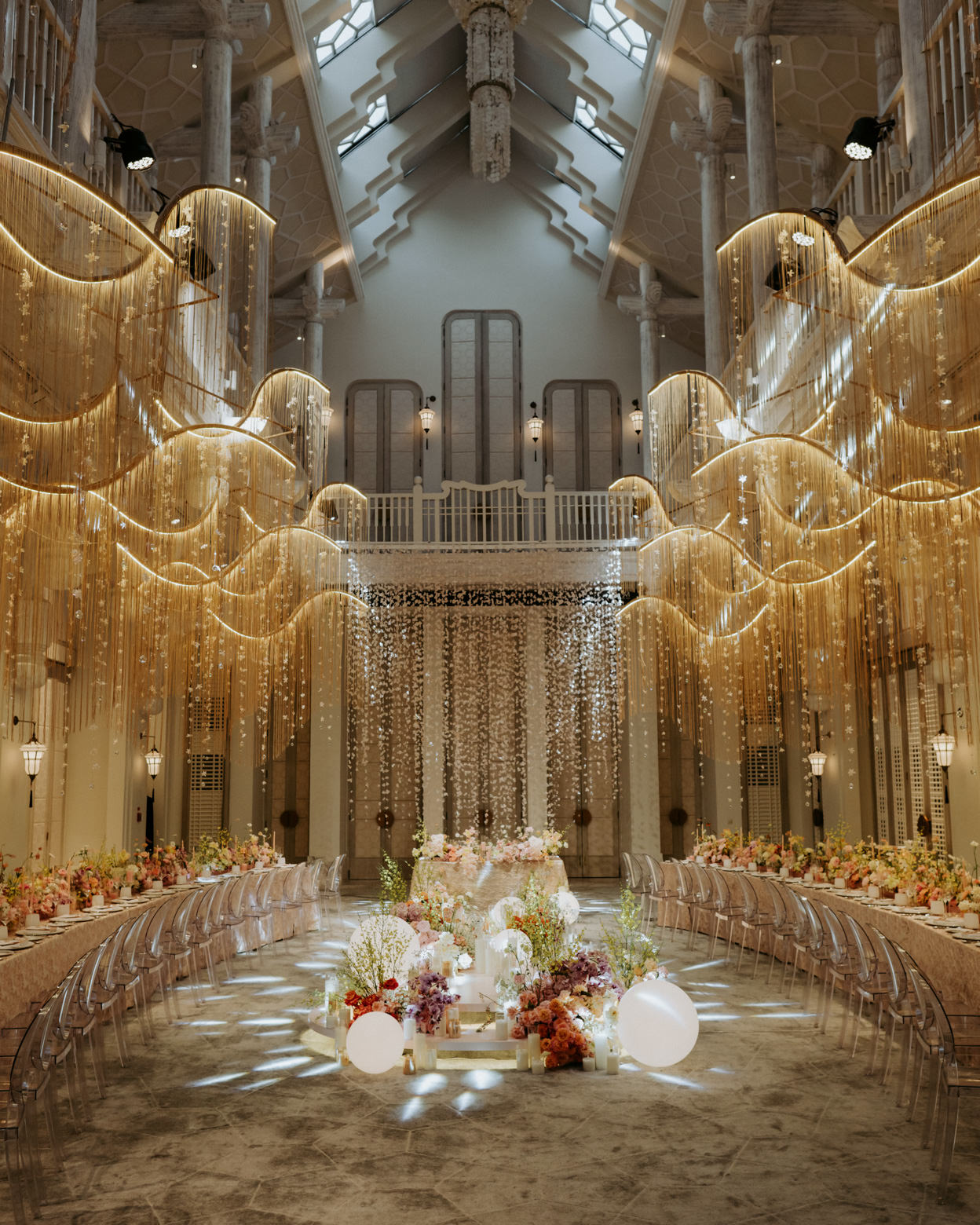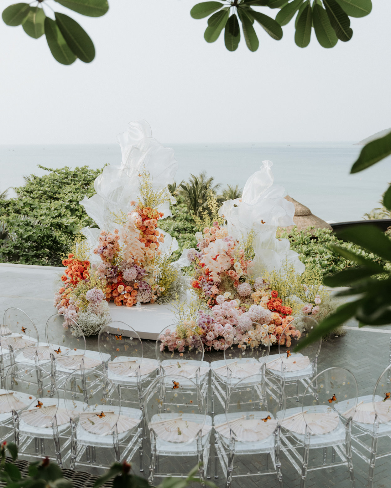 The reception hall at Intercontinental Danang is a serene, elegant space adorned in cream hues, bathed in natural light, perfect for daytime or evening events. Its sophistication creates an intimate ambiance, making it an ideal choice for weddings.